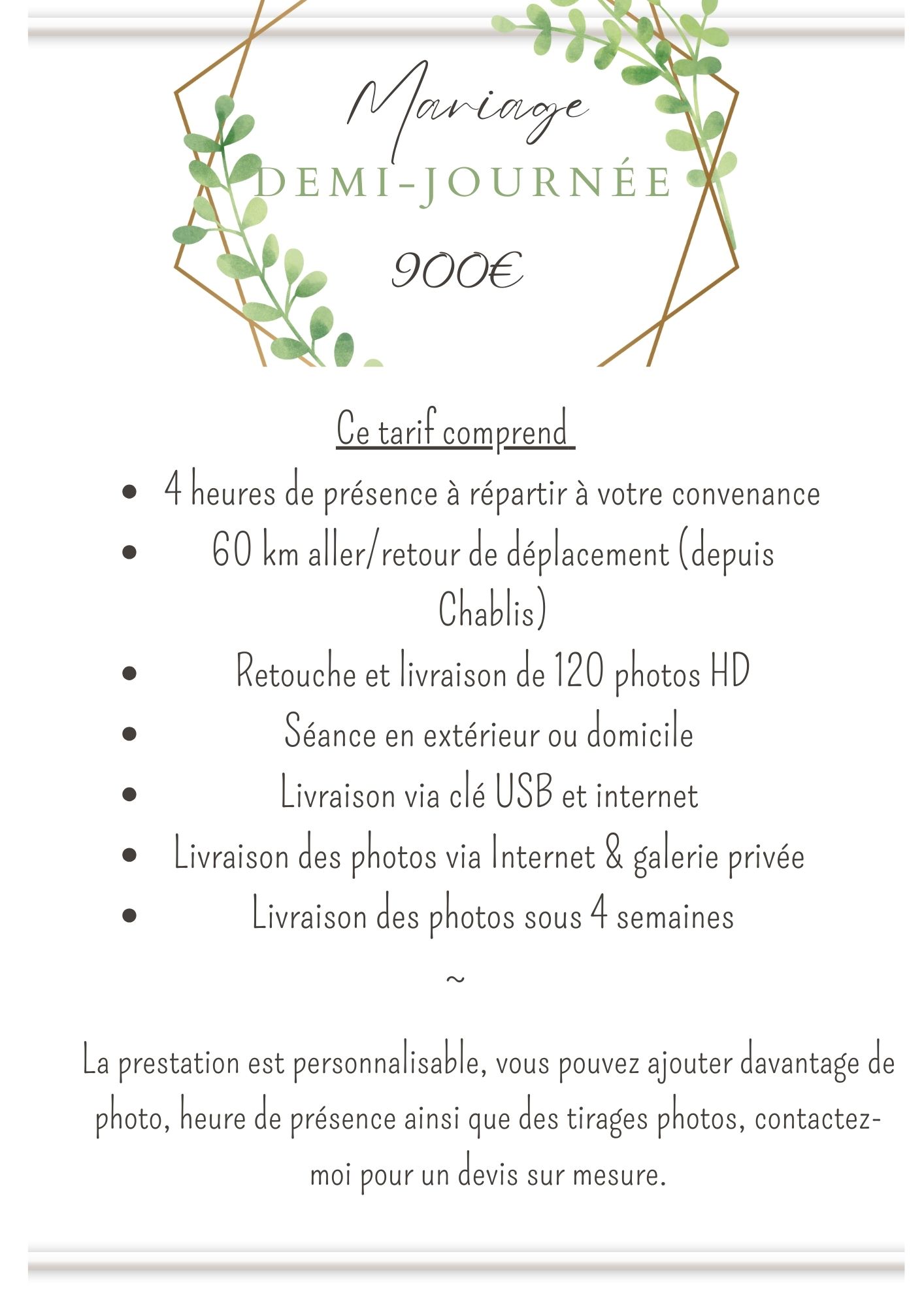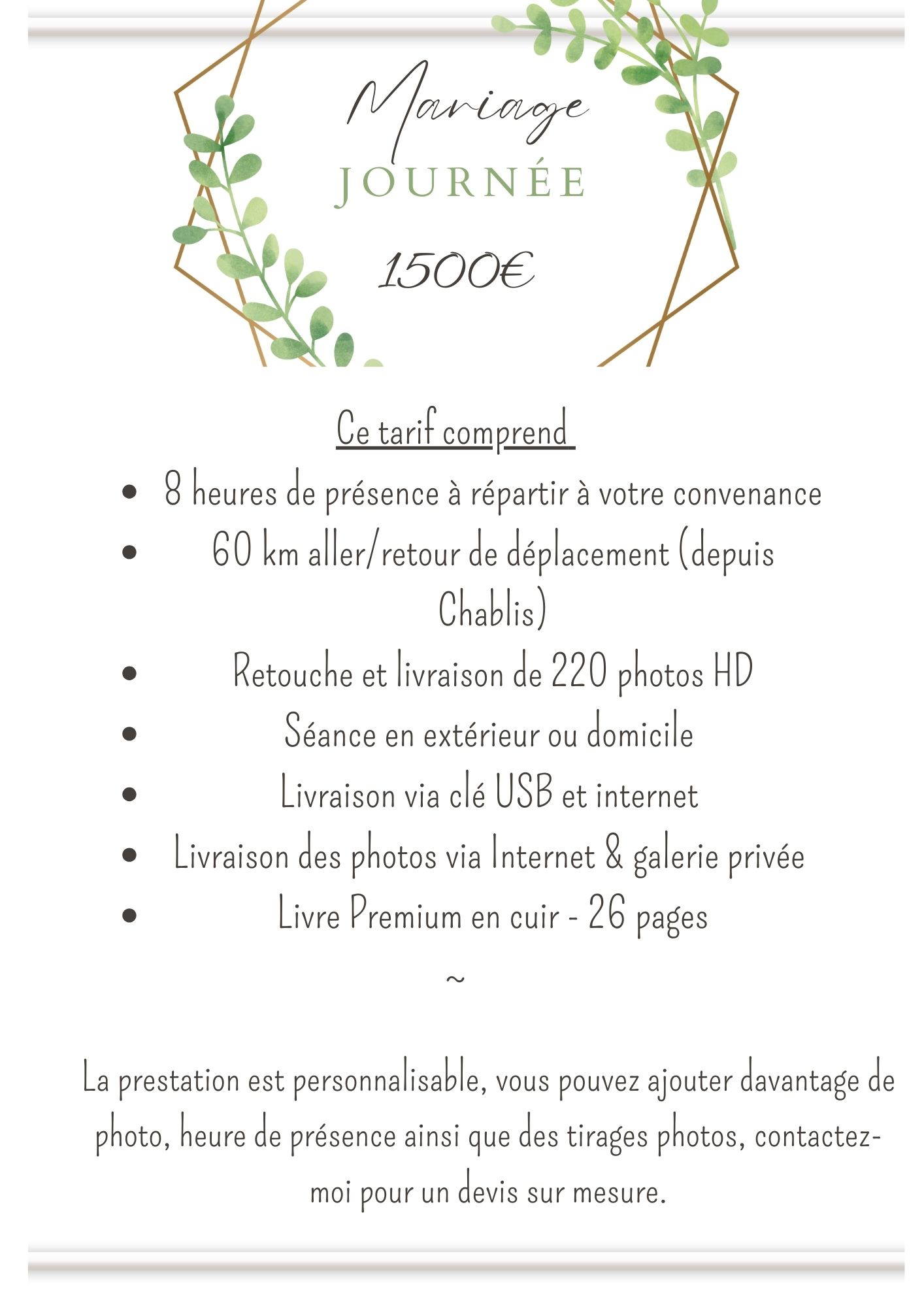 Parce que charque mariage est unique, cette prestation est personnalisable : ajoutez des photos, des tirages ou des option qui vous permettra de garder des souvenirs qui vous sessemblent vraiment.